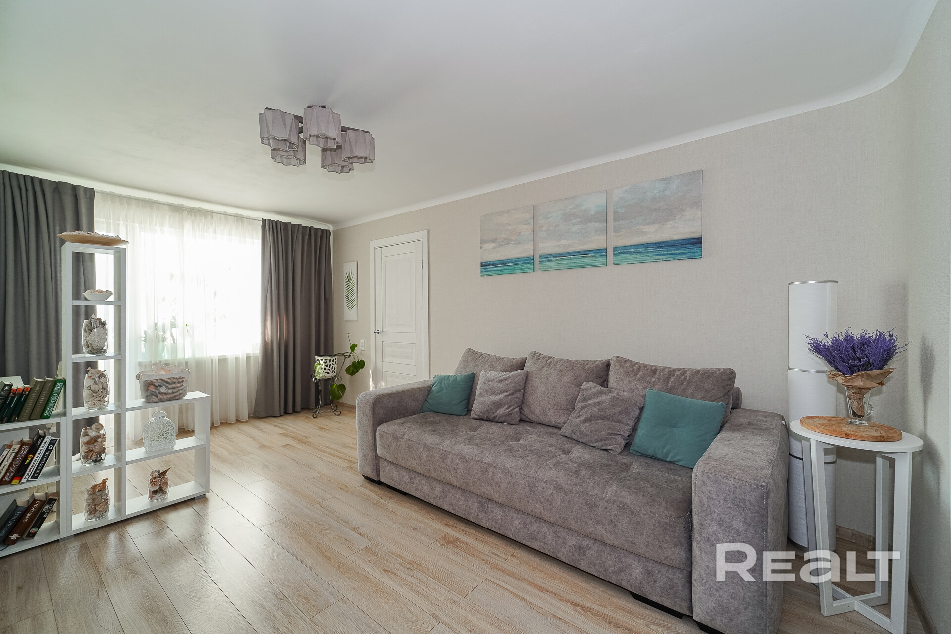 Состояние квартиры: хороший и свежий ремонт. В окнах установлены стеклопакеты, на полу ламинат и плитка, на стенах обои, потолки окрашены. За счет наличия трех лоджий, в квартире всегда тепло, светло и уютно.