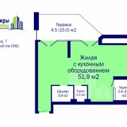 Метраж квартиры: общ 64.9 жилая 51.9 м2