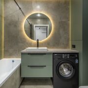 -В доме обустроены проходные подъезды с дверями с витражным остеклением, а на первом этаже предусмотрено круглосуточное видеонаблюдение.