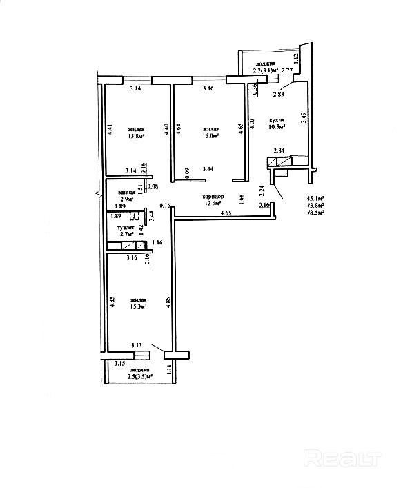 Общая площадь по СНБ 78.5 м2.