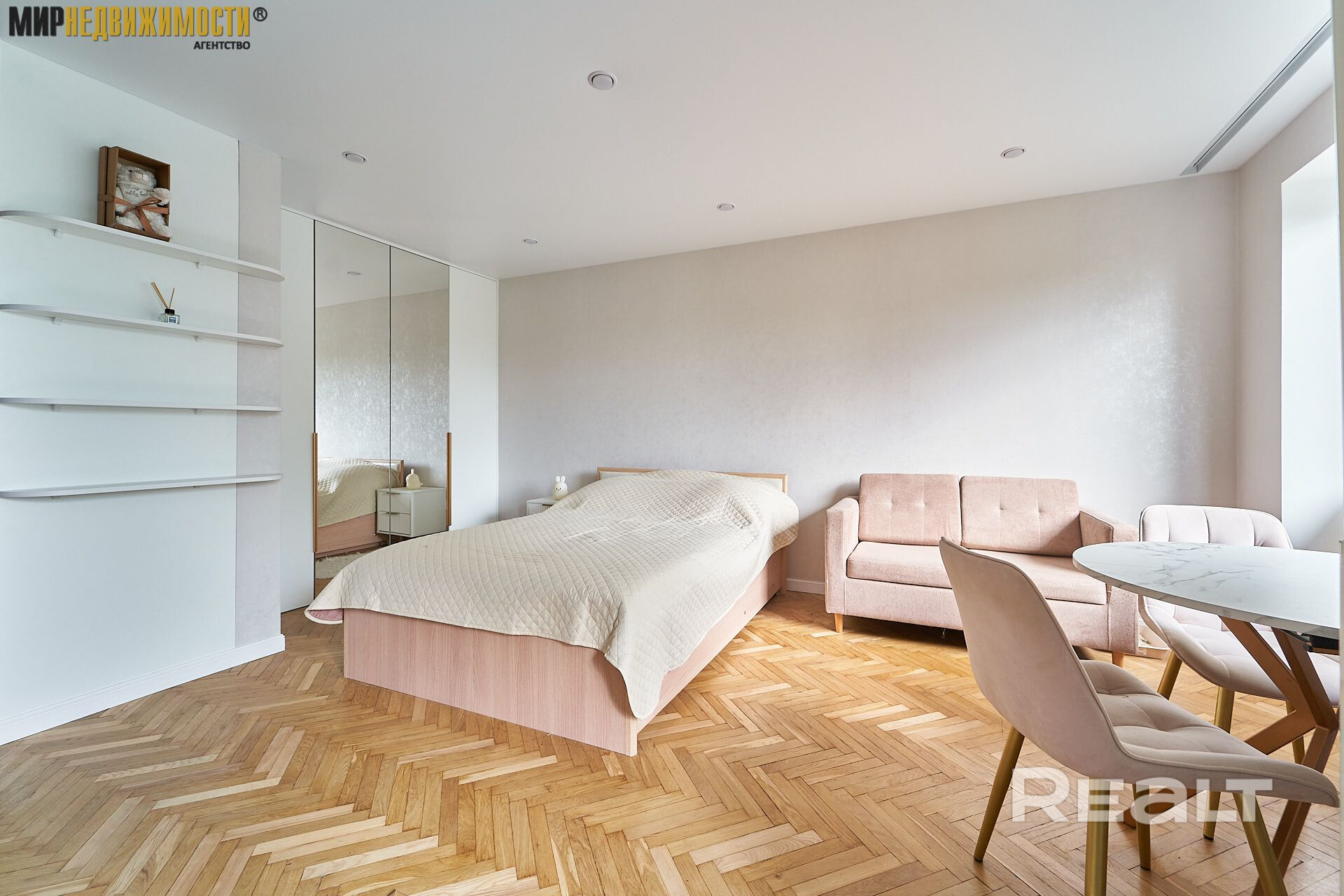 Квартира состоит из просторной жилой комнаты, кухни и совмещенного санузла. Балкон не застеклен. Окна - стеклопакеты.