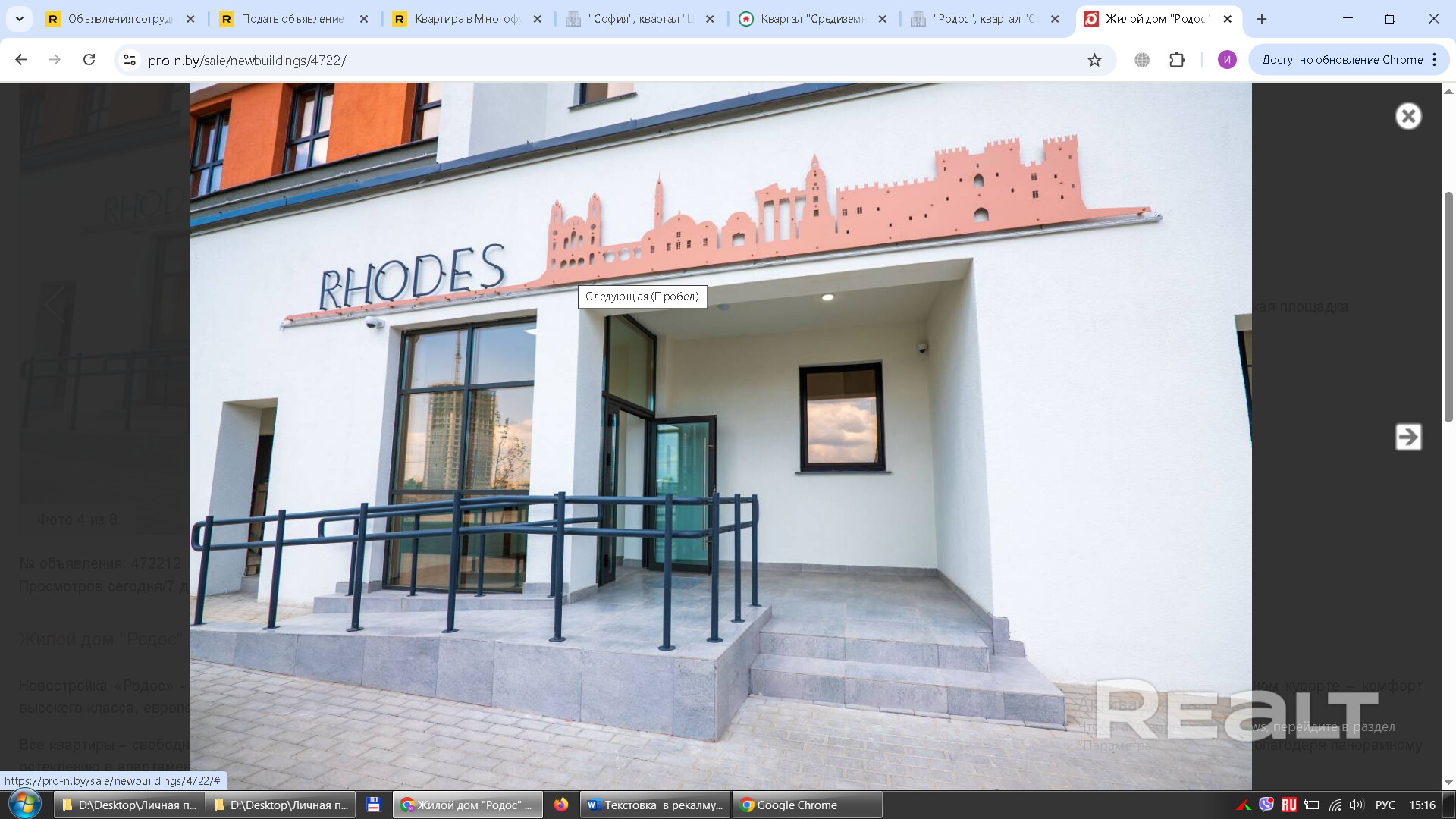 "Родос", квартал "Средиземноморский", 2 комнатная квартира в ЖК "Минск Мир"