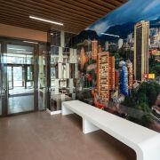 Дизайнерское лобби, место для консьержа, зона отдыха, туалет с пеленальным столиком и местом для мытья лап домашних питомцев. Есть отдельное помещение для хранения велосипедов и увеличенный тамбур, в котором можно хранить детские коляски.
