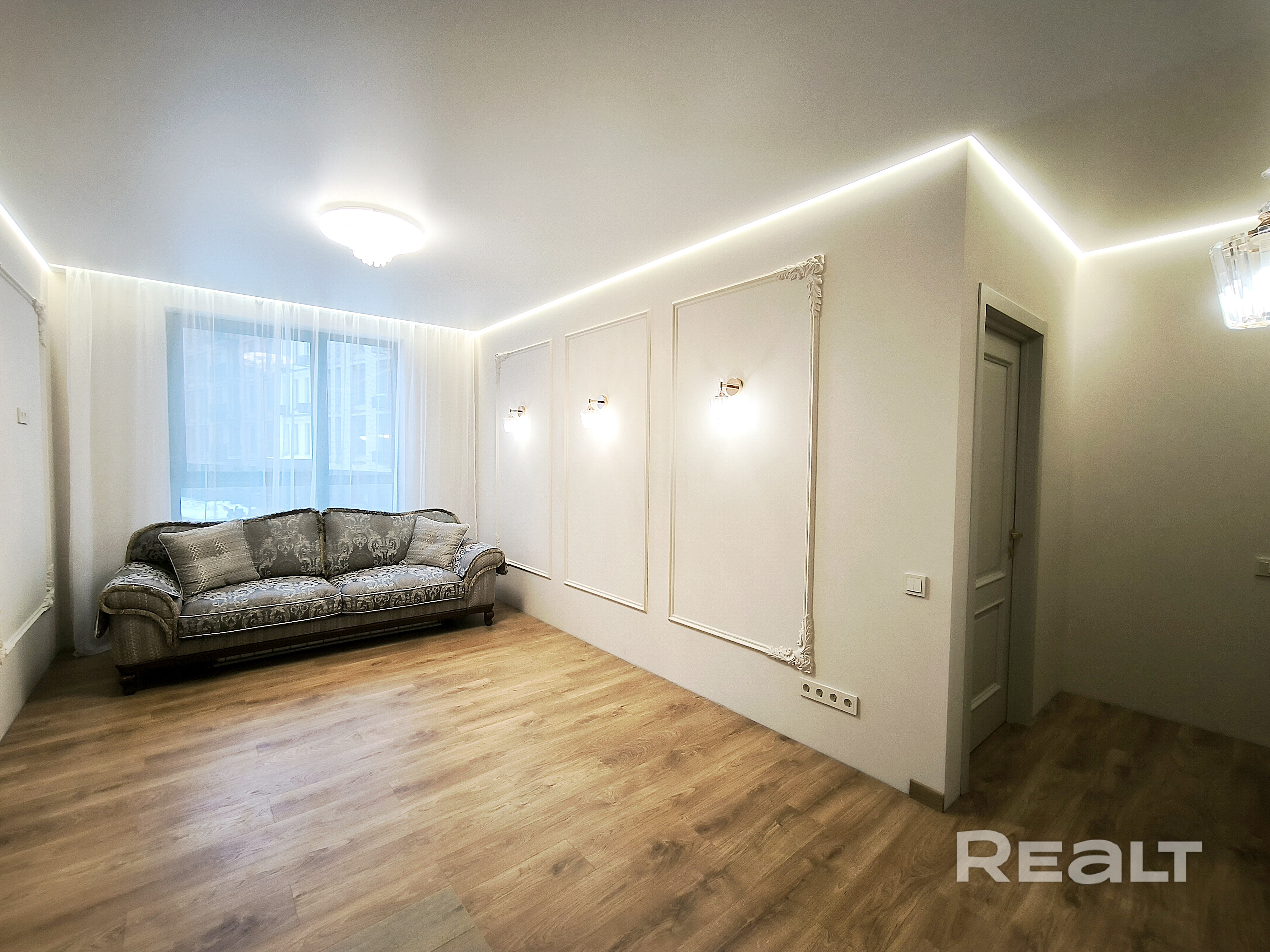 Светлая квартира на 2-м этаже полностью готова к проживанию. Интерьер выполнен с использованием премиальных материалов. Реализовано грамотное зонирование пространства, квартира функционально продумана до мелочей: от текстур до оттенков.