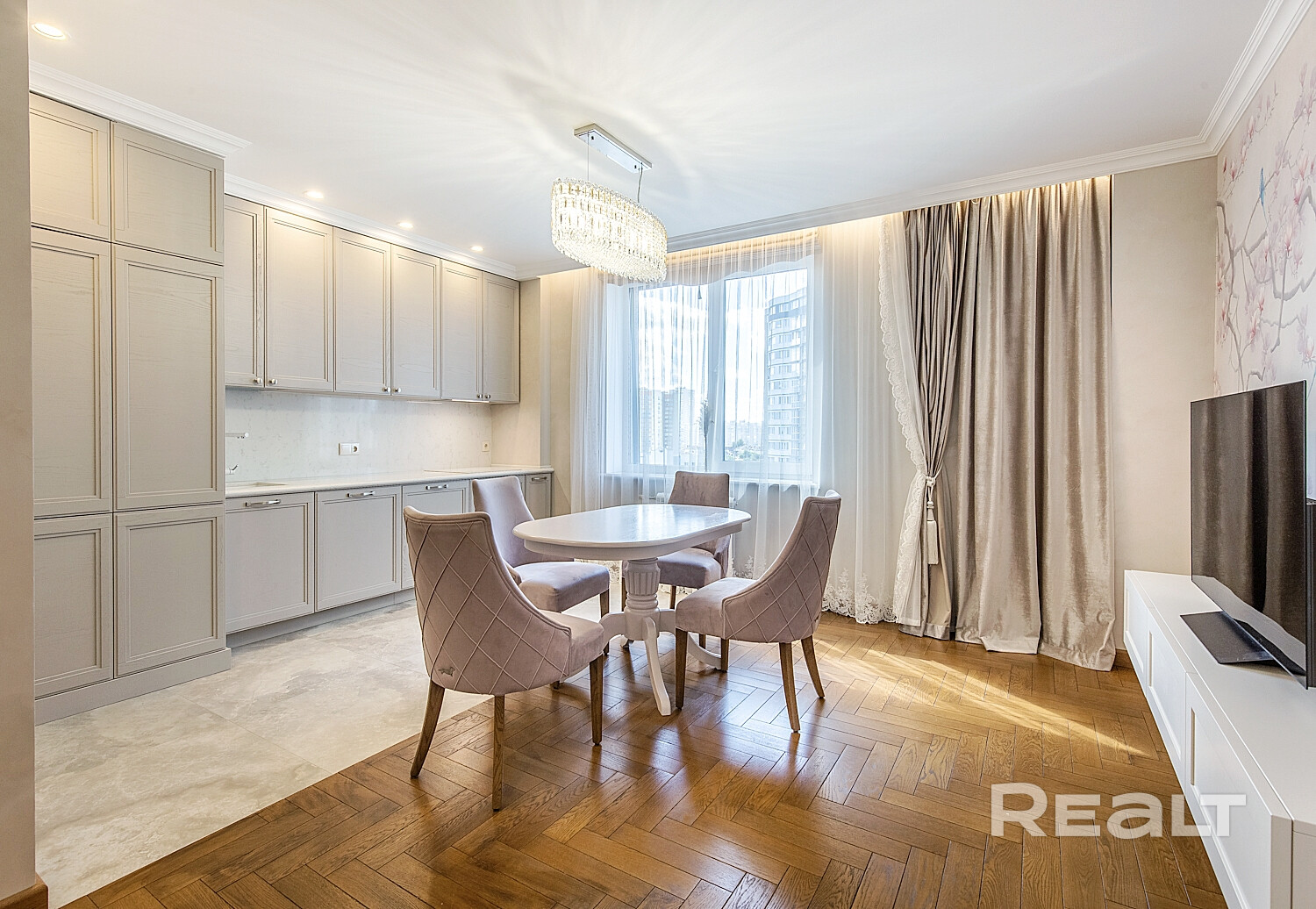 Светлая квартира на 6-м этаже с видом на Олимпик Парк и водоём Лебяжий полностью готова к проживанию. Интерьер выполнен по авторскому проекту с использованием премиальных материалов: дубовый паркет, итальянская плитка, художественные фрески Affresco, двери из лимитированной коллекции Sofia, мебель Sofa Club. Реализовано грамотное зонирование пространства, квартира функционально продумана до мелочей: от текстур до оттенков.