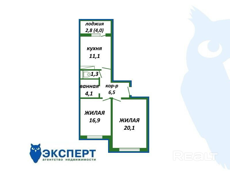кухня - 11,1 кв.м, большая лоджия - 4 кв.м.