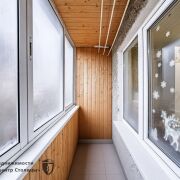 Отделка и удобства: ламинат и линолеум в комнатах, плитка в санузле, стеклопакеты, металлическая входная дверь, балкон обшит вагонкой.