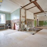 В квартире произведен демонтаж всех внутренних стен, остались только несущие колоны, что значительно уже экономит время и деньги для реализации ремонта. Двор дома утопает в зелени и высоких ивах.
