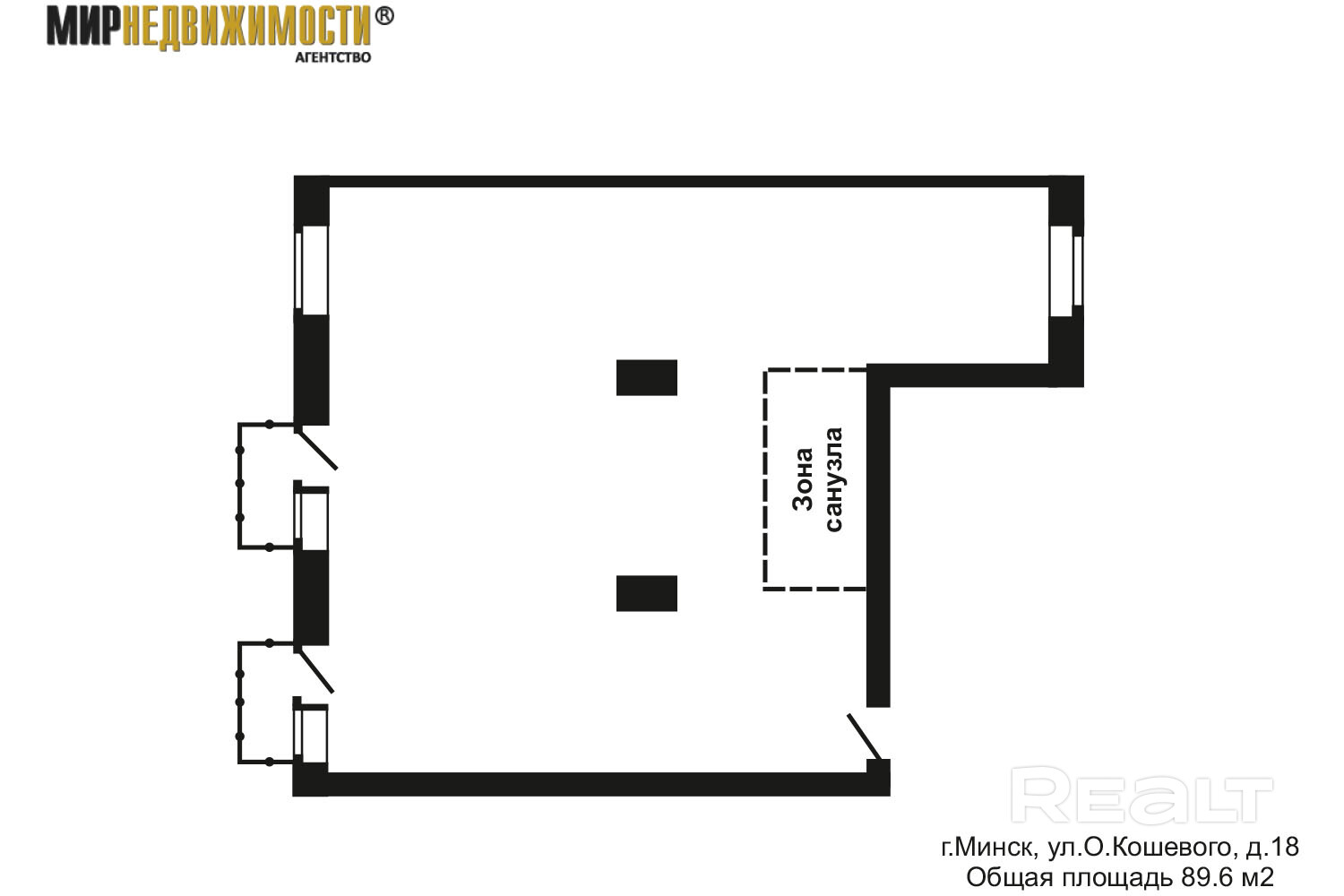 Общая площадь 89,6 кв.м., жилая площадь 47,8 кв.м., кухня 11,65 кв.м. Высота 3,10 м. 2 балкона.