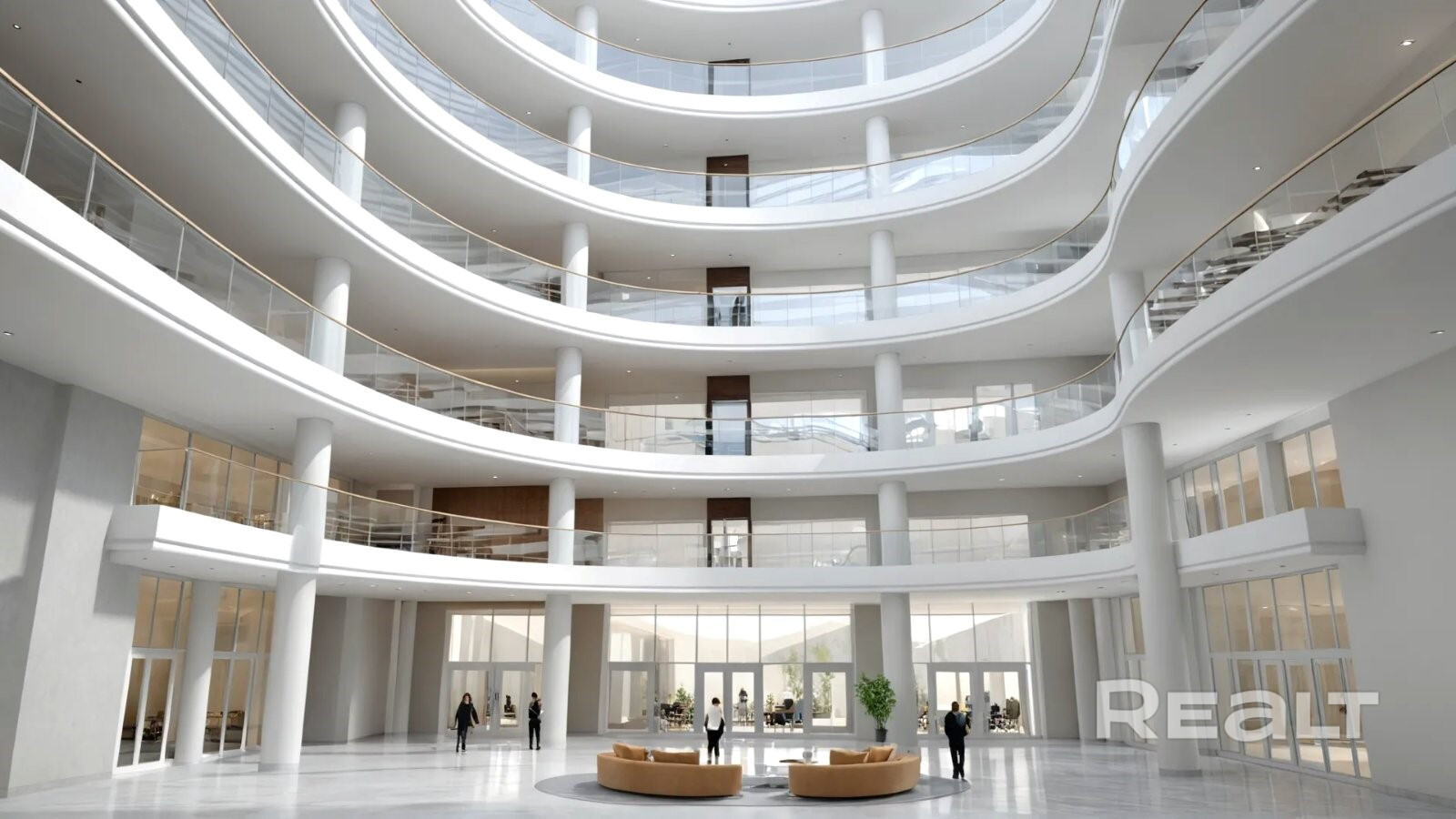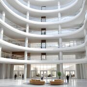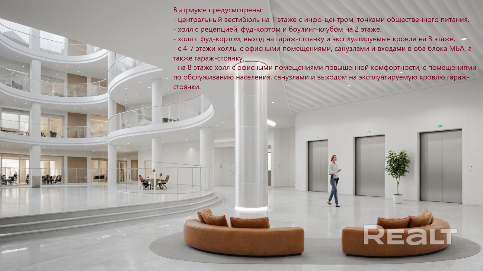 Дом разделен центральным атриумом на 2 изолированные блока, каждый из которых организован отдельными входами.