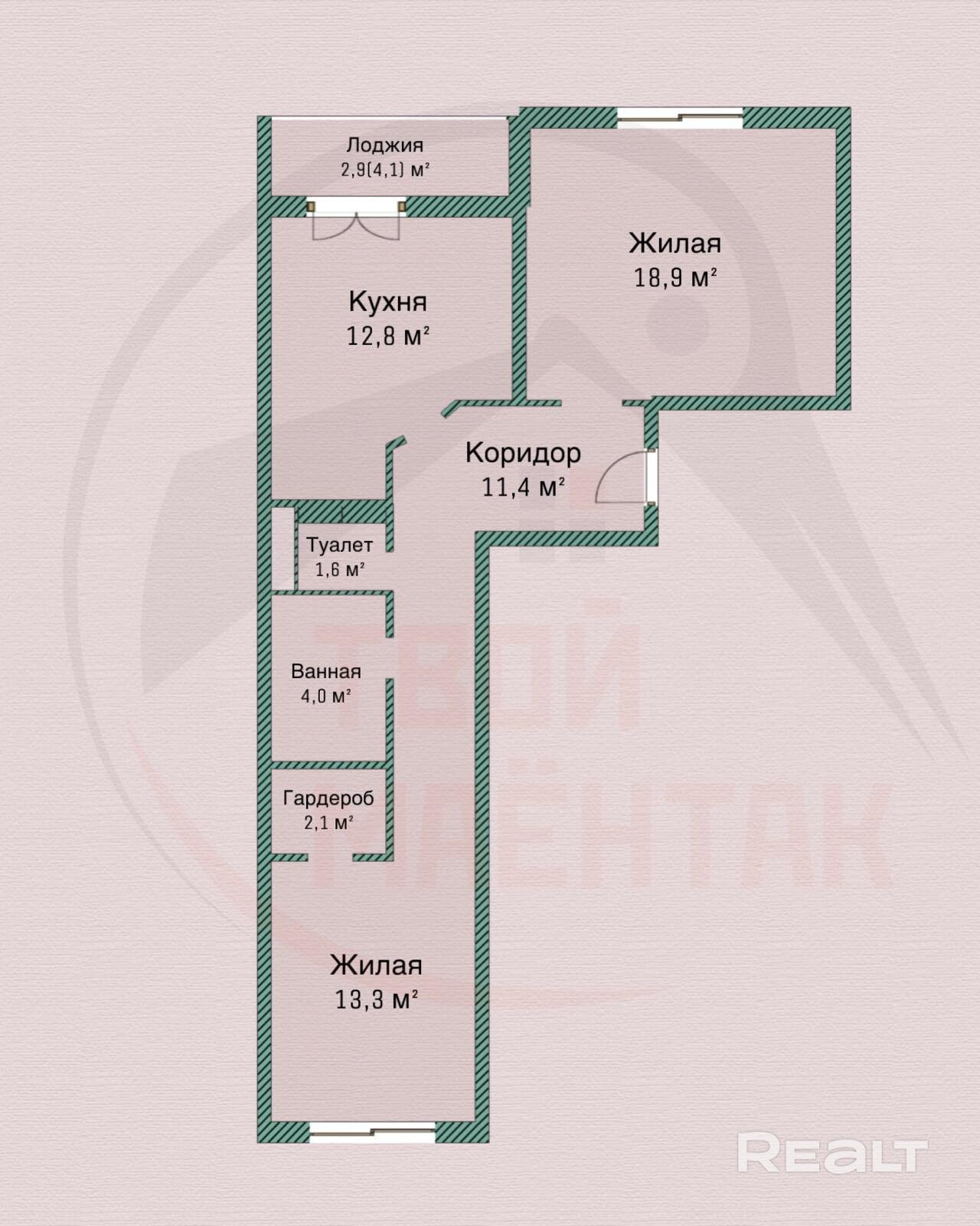 Площадь по СНБ — 67 м2. В квартире две полноценные комнаты, светлая кухня с выходом на застекленную лоджию, раздельный санузел, спальня с обустроенным гардеробом. Встроенная мебель из дерева создает уют и функциональность.