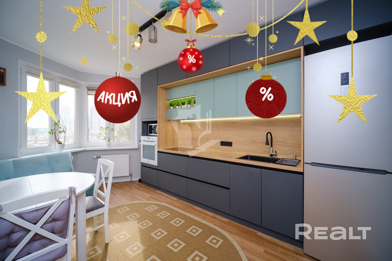 • Просторная кухня, полностью оборудованная европейской техникой