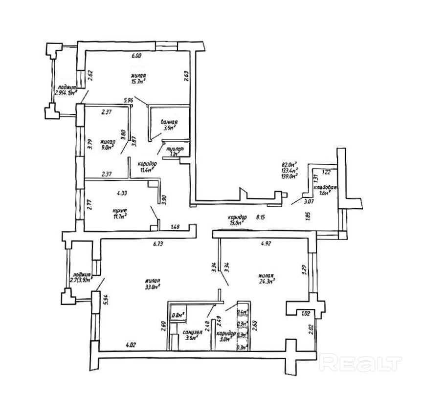 Три раздельные комнаты, просторная гостиная, кухня, два сан узла, две застекленные лоджии. Установлены кондиционеры, полы с подогревом, вид на две стороны - на проспект и во двор.