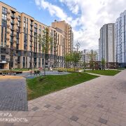 Просторный двор с ландшафтным дизайном оборудован многофункциональными детскими площадками из эко-материалов и зонами отдыха. Доступ во двор только для жильцов ЖК. Просторное лобби с дизайнерской отделкой. 2 бесшумных скоростных лифта.