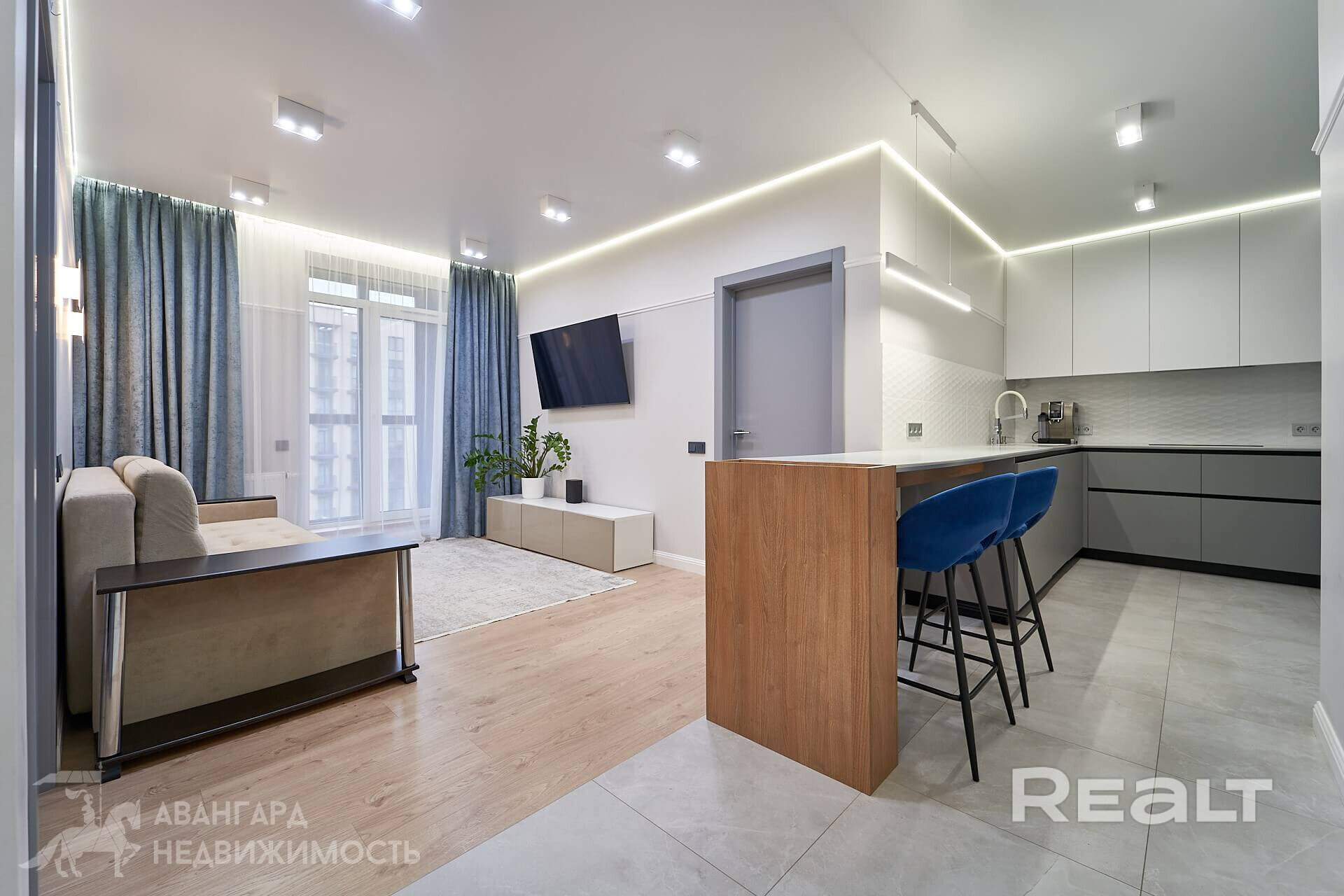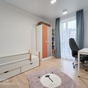 Пространство квартиры грамотно организовано. Кухня-гостиная в центре квартиры с выходом на лоджию, детская и спальня по разные стороны от гостиной. Оборудована отдельная гардеробная комната. Санузел раздельный.