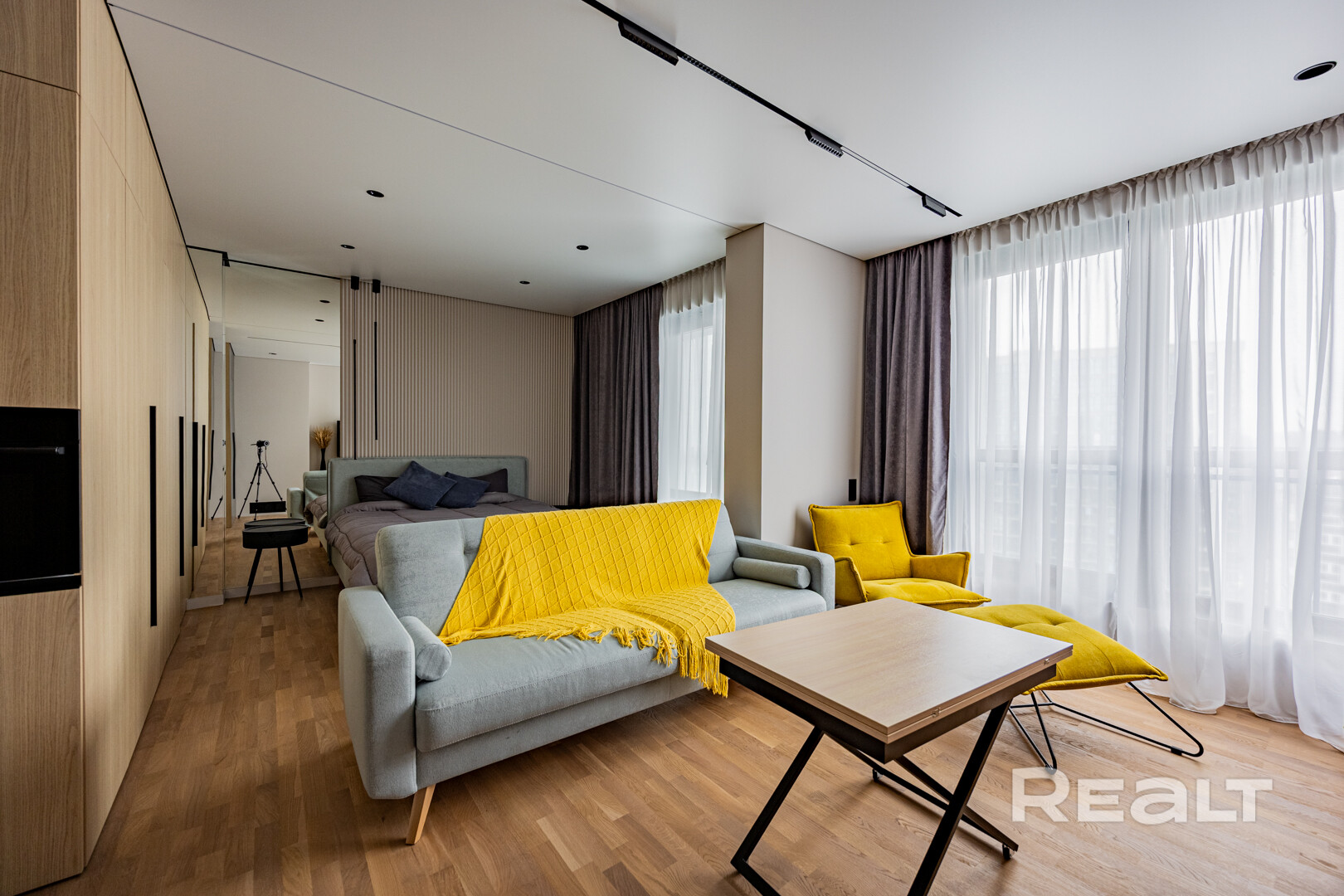Светлая и уютная квартира расположена на 21-ом этаже 25-ти этажного дома, что позволяет любоваться рассветами и закатами из панорамных окон. В квартире никто не проживал, выполнен дизайнерский ремонт из дорогостоящих материалов премиального качества. Предусмотрено все для Вашего комфорта. Установлена металлическая входная дверь, на полу уложена паркетная доска, на лоджии и в санузле – импортная плитка. Много шкафов для хранения, кондиционер, встроенная бытовая техника европейских производителей – холодильник, вытяжка, варочная поверхность, духовой шкаф с функционалом микроволновой печи, посудомоечная машина. Установлены датчики протечки воды. Предусмотрено разделение комнат перегородкой. Квартира продается с мебелью и техникой. Подходит как для комфортной жизни, так и в качестве выгодной инвестиции.