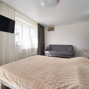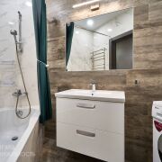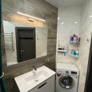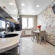 В квартире сделан основательный, современный ремонт. При отделке использовались дорогостоящие импортные строительные материалы. Напольное покрытие ламинат и плитка. Стены выровнены и оклеены обоями. Натяжные потолки по всей квартире. Дорогостоящие межкомнатные двери. Квартира максимально оборудована мебелью и техникой. Системы хранения представлены вместительными шкафами –купе в коридоре и спальне. Детская комната обустроена корпусной мебелью (шкаф, стол, полки, комод и кровать). В кухне установлена встроенная кухня с бытовой техникой. Ванная комната и туалет облицованы.