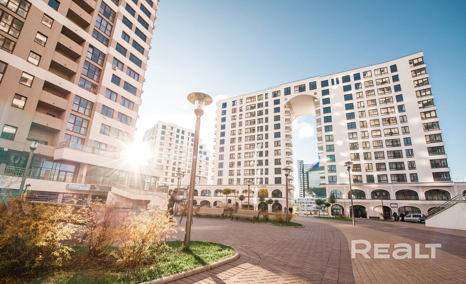 · ЖК Маяк Минска – это настоящий «город в городе». Тут есть всё: кафе, рестораны, магазины, крупнейший ТРЦ «DanaMall», кинотеатр, медицинские центры, банки, аптеки, салоны красоты, школа, детские сады и др.