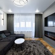 • Встроенная сантехника, выключатели soft touch, сценарное освещение, 3D-панели с подсветкой.