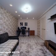 Окна – стеклопакеты ПВХ с москитными сетками. Межкомнатные двери – шпон, входная – металлическая. Пол – ламинат 33 категории (Германия), обои (Италия), импортная плитка в сан.узле, натяжные потолки. В стоимость входит: встроенная кухня с бытовой техникой (вытяжка Zorg, газовая панель Gefest, духовой шкаф Samsung), прихожая, шкаф на лоджии.