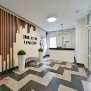 - Шикарное дизайнерское лобби-рецепция со стойкой для консьержа и всеми удобствами: зоной ожидания гостей и санитарной комнатой с пеленальным столиком.