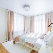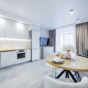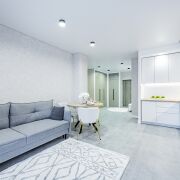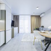 Современный ремонт выполнен в нейтральных теплых тонах с применением качественных, материалов.