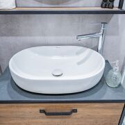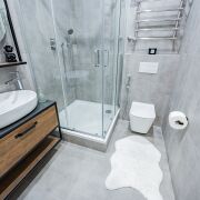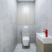 Накопительный водонагреватель обеспечивает постоянную подачу горячей воды на два санузла и кухню.