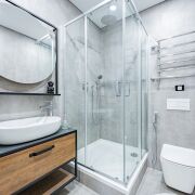 В санузлах высококачественная плитка и сантехника, тропический душ.