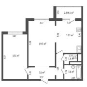 Площадь по СНБ: 64,2 м2, Общая: 61,3 м2, Жилая: 36,4 м2