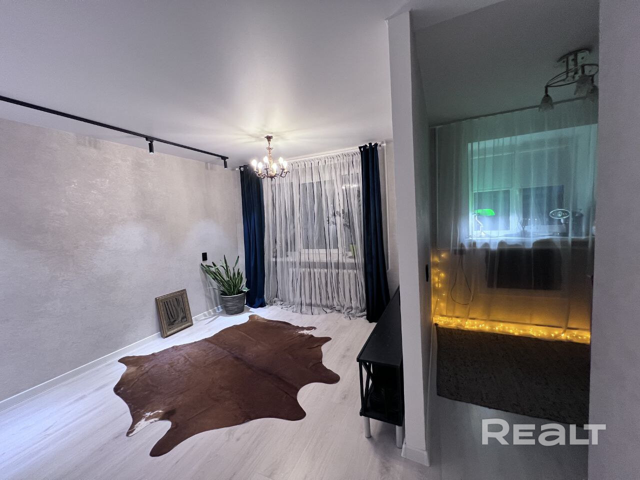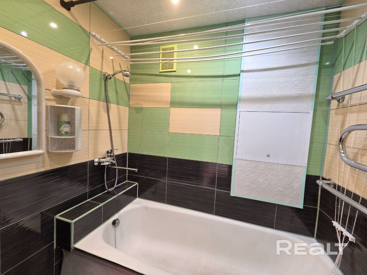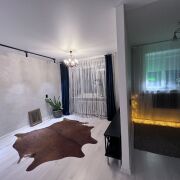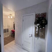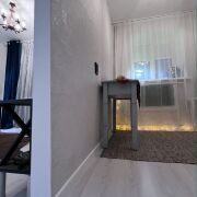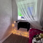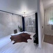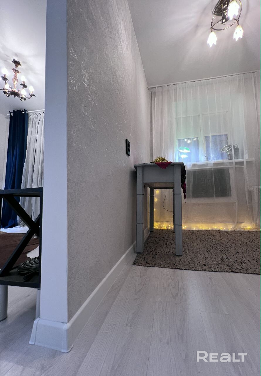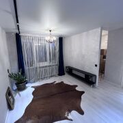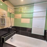 В квартире сделан хороший ремонт, металлическая дверь, пластиковые окна, ламинат одним ковром,просторная комната разделена на зоны - трековым освещением , уютная небольшая кухня-ждет ваши мебельные предпочтения. Облицованная плиткой ванная комната, размер установленной ванны - 1.70.