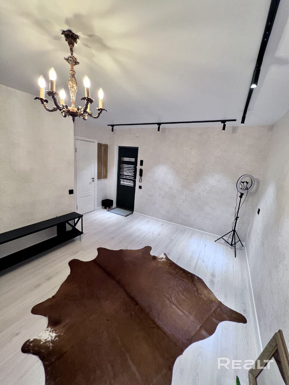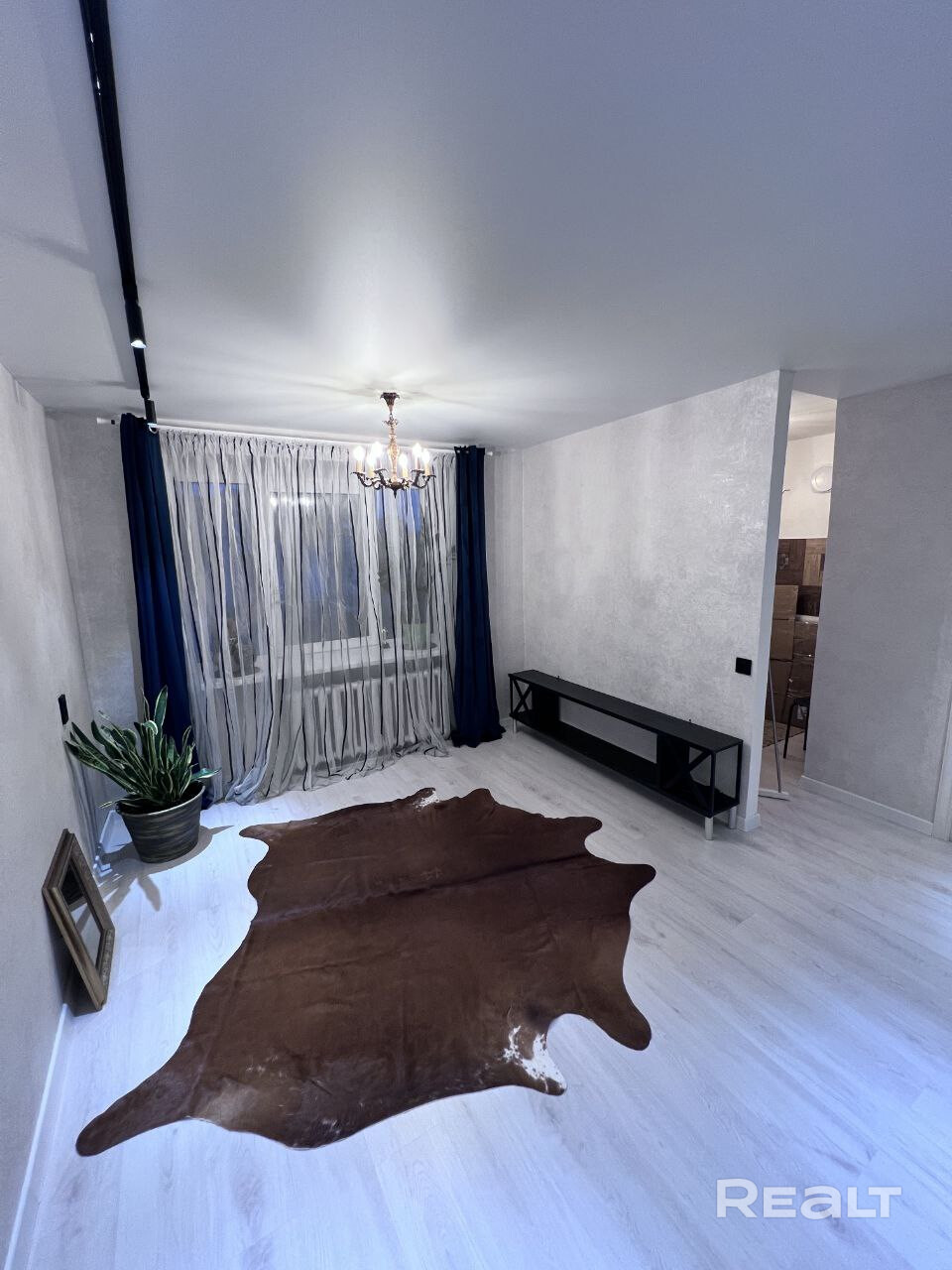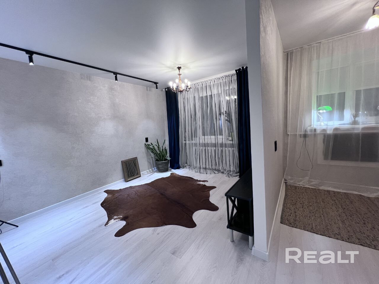 В квартире сделан хороший ремонт, металлическая дверь, пластиковые окна, ламинат одним ковром,просторная комната разделена на зоны - трековым освещением , уютная небольшая кухня-ждет ваши мебельные предпочтения. Облицованная плиткой ванная комната, размер установленной ванны - 1.70.