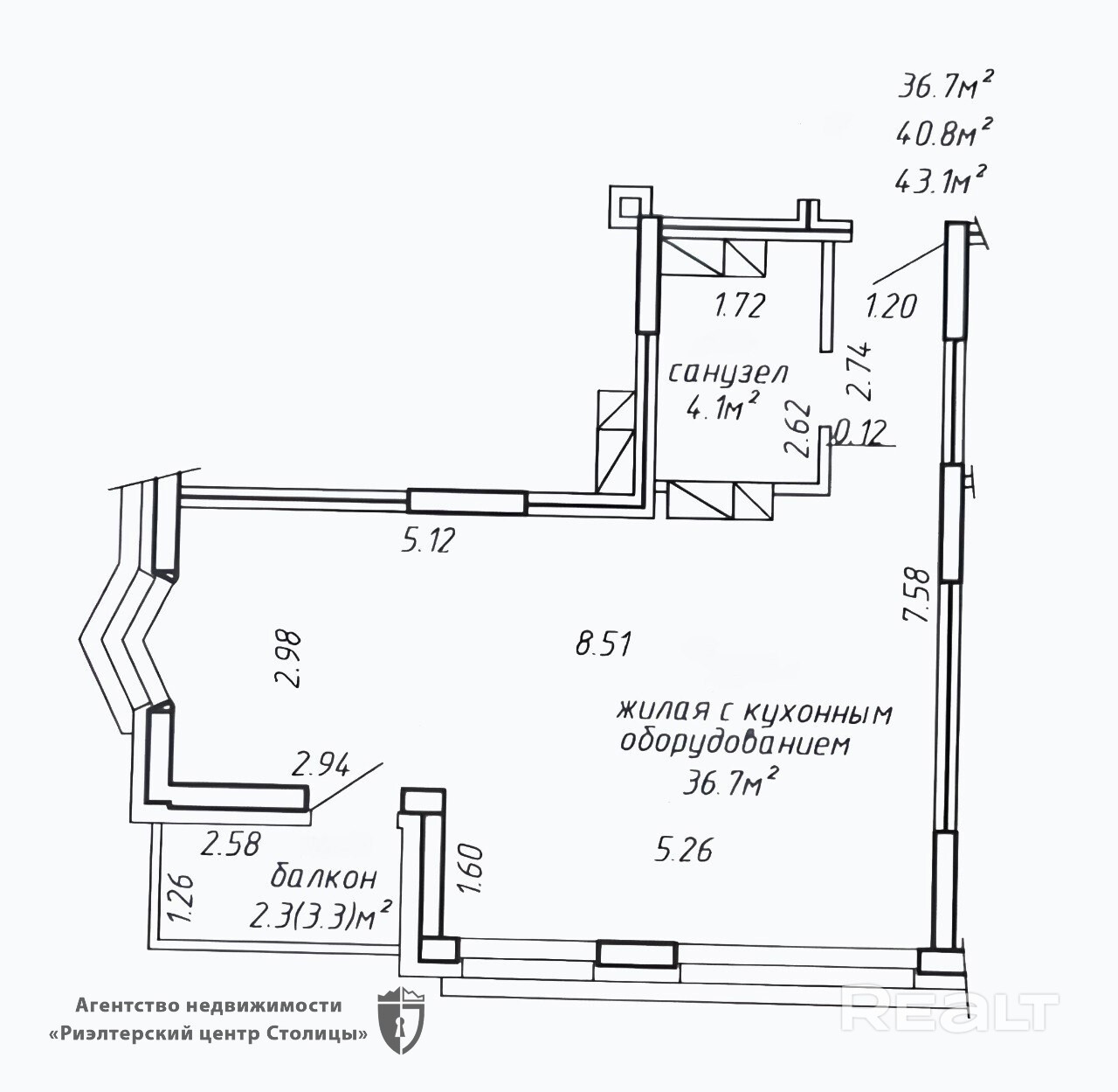 43.1 м²