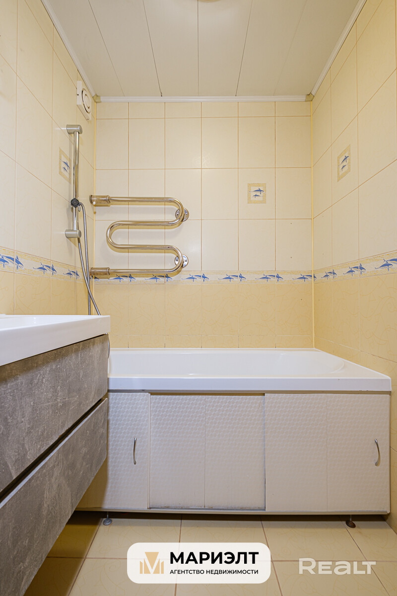 • Полы: ламинат в комнатах, плитка в коридоре, ванной и туалете, линолеум на кухне.