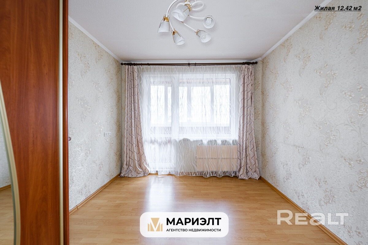 Квартира расположена на 5 этаже 10-этажного дома. Общая площадь: 58,86 м2, жилая: 38,87 м2, кухня: 7,16 м2. Просторные комнаты: 9,34м2, 12,42м2, 17,11м2. Окна (ПВХ) выходят на обе стороны дома, обеспечивая отличное освещение.