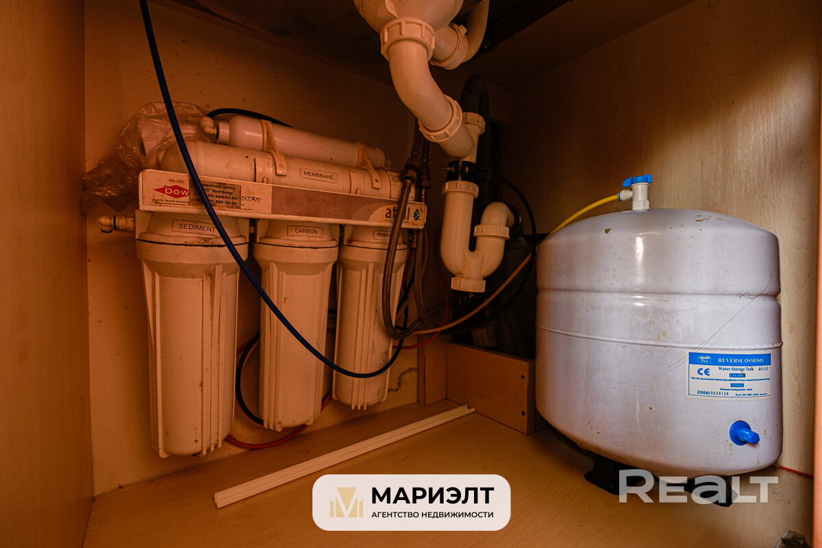 • Встроенная кухня оборудована современной техникой: посудомоечная машина (40 см), газовая плита, духовка, вытяжка, фильтр для воды (обратный осмос).