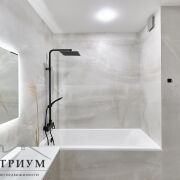 Качественный ремонт с использованием крупноформатного испанского керамогранита и итальянской декоративной штукатура на стенах.