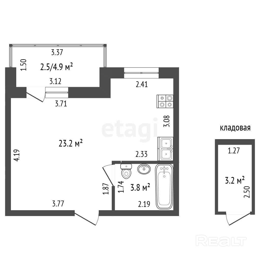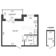 Квартира площадью 29,5 кв.м. имеет квадратное соотношение сторон и позволяет воплотить в жизнь различные задумки по будущей планировке, как с изолированной комнатой так и в формате студии.