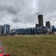 Внутри квартала имеются детские площадки для разных возрастов, а рядом расположен крупнейший торгово-развлекательный центр страны Авиа Молл. Развита инфраструктура общественного транспорта и маршрутных такси позволяет легко добраться до любой точки города, а удобный выезд на второе транспортное кольцо Минска и близость станции метро Аэродромная делают эту локацию особенно привлекательной.