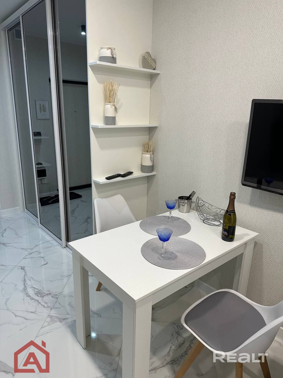 Отличная квартира-студия в современном жилом комплексе Minsk World, расположенная в Средиземноморском квартале, доме Ницца. Квартира находится на высоком 8-ом этаже каркасно-блочного дома, построенного в 2021 году, и предлагает прекрасный вид из окон.