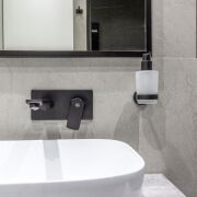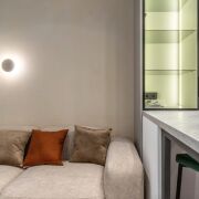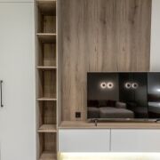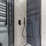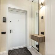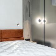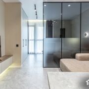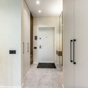 Потолки — натяжные с теневым профилем, свет — точечный и трековый