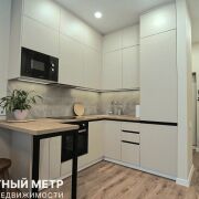 Оснащение кухни: встроенная кухня по индивидуальному проекту с фурнитурой BLUM.Вся необходимая техника: индукционная варочная панель, духовой шкаф, встроенный холодильник, посудомоечная машина, вытяжка и микроволновая печь.Мойка из искусственного камня.