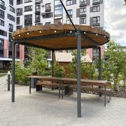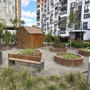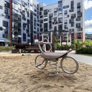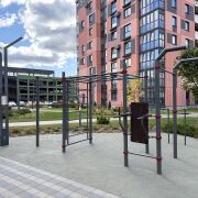Проходной подъезд с выходом на улицу и в замечательный двор, который состоит их четырёх домов и имеет закрытую территорию. Во дворе расположены современные детские площадки, зоны отдыха для взрослых, мини огороды, воркаут площадка, велобоксы и множество зелени.