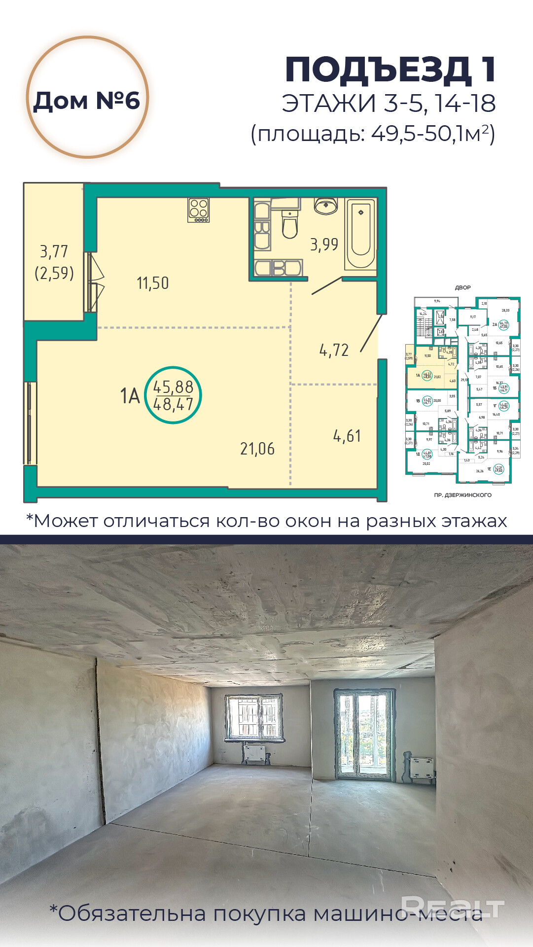 1-комнатная квартира с черновой отделкой в новостройке 2025 года напрямую от Застройщика!