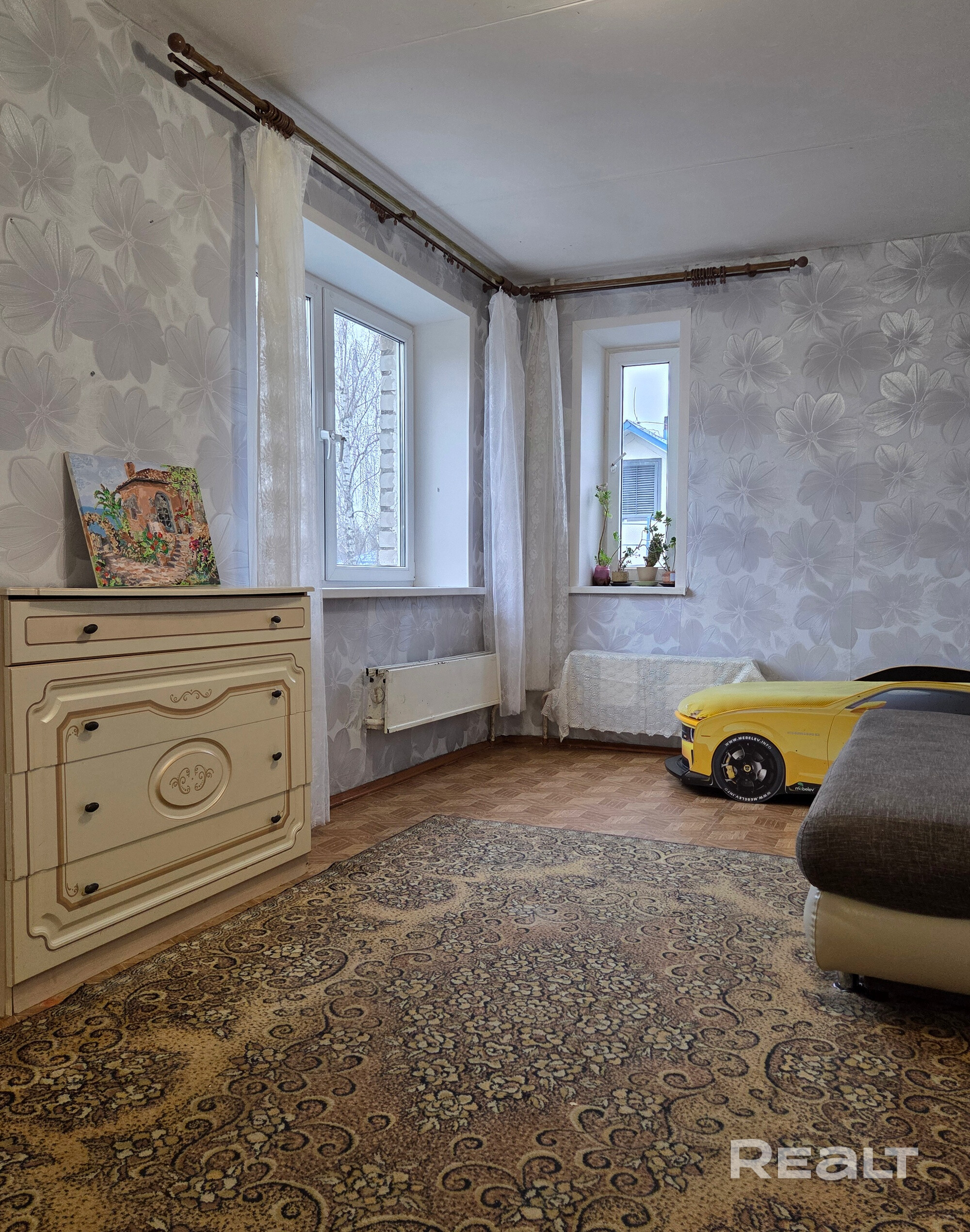 Толстые кирпичный стены, в комнате два окна - квартира тёплая и светлая.