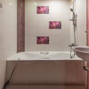 Санузел раздельный, весь в плитке. Ванна площадью 3.1 м2, имеется вывод под стиральную машину. Туалет площадью 1 м2.
