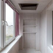 Из кухни имеется выход на ещё одну лоджию площадью 2.2 м2 из которой также имеется подъем на этаж выше, где организованы места для хранения.