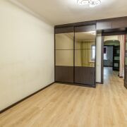 Спальня: площадью 13.8 м2. Установлен просторный шкаф, который заменит полноценную гардеробную. Пространство позволяет разместить спальное место и туалетный столик. Из спальни имеется выход на одну из лоджий, площадью 2.3 м2. Лоджия полностью застеклена, отделана и продлена на этаж выше, благодаря наличию технического этажа. Вспомогательное помещение оборудовано полками для хранения.