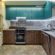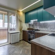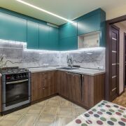 Кухня: 9.1 м2 полностью мебелирована, установлена вся необходимая мебель и техника. Духовой шкаф, газовая панель, посудомоечная машина, вытяжка, имеется место для установки микроволновой печи. Благодаря угловому расположению, у вас остается большое количество рабочего пространства, а это рай для настоящей хозяйки. Площадь кухни и грамотное расположение позволило организовать рабочую зону и зону для приема пищи.