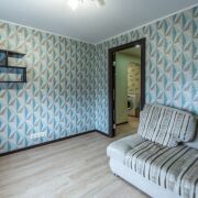 Гостиная: площадью 17.8 м2. Идеальное место для посиделок с друзьями или отдыха после тяжелого рабочего дня. На стенах обои, потолок натяжной, на полу ламинат.
