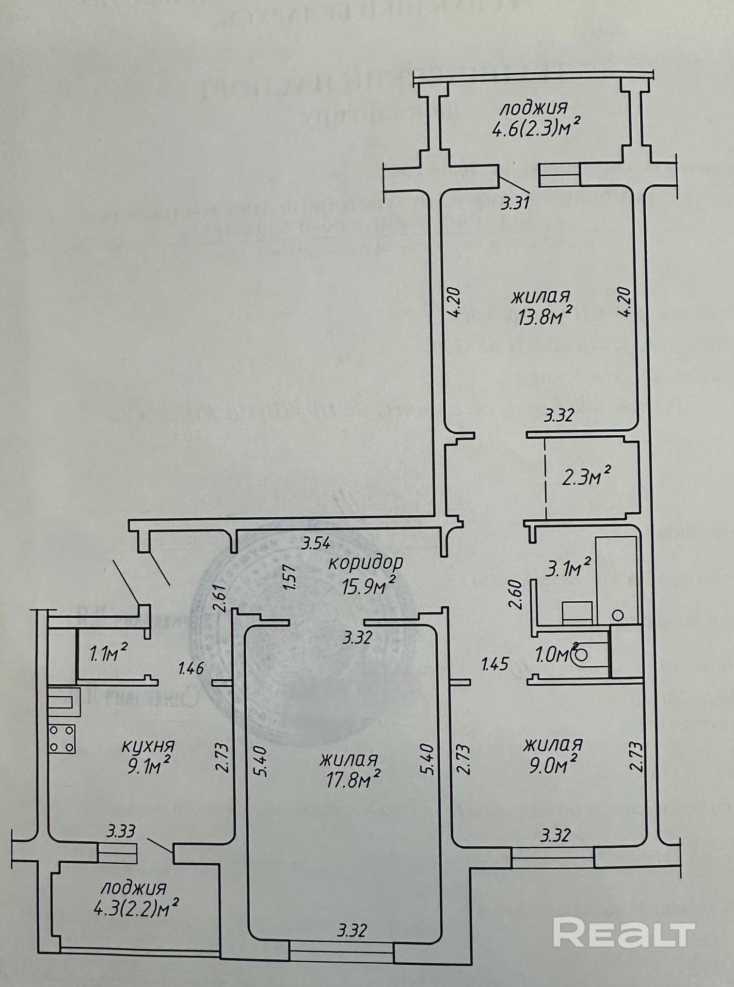 Метраж квартиры: по СНБ 77.6 общ. 73.1 жил. 40.6 кухня 9.1 м2